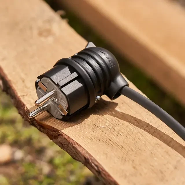 Угловая влагозащищенная электрическая вилка предназначена для подключения бытовых и профессиональных приборов к электросети. Вилка разработана для использования в сложных эксплуатационных условиях с высокой влажностью. Широко применяется в быту, на производстве и в строительстве. Степень защиты IP44 позволяет использовать вилку для организации электропитания под открытым небом, а в дождь – под навесом. Не допускается погружение в воду. Угловая форма вилки облегчает подключение в ограниченном пространстве и уменьшает износ кабеля. Для обеспечения безопасности детали, соприкасающиеся с токоведущими частями выполнены из огнеупорного материала, устойчивого к температуре до +850 ⁰С. Ударопрочный разборный корпус выполнен из каучука: устойчив к ударам, вибрациям и другим механическим воздействиям. Заземление: есть. Сечение проводников: 0,75-2,5 мм². Контактная группа: MS-58 (латунь). Тип полюсов: 2Р+РЕ.