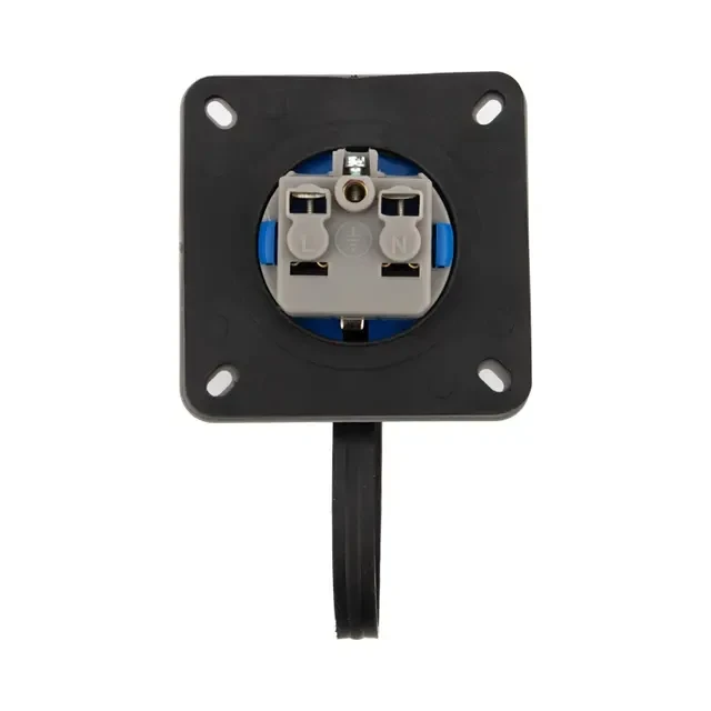Настенная влагозащищенная фланцевая электрическая розетка используется для подключения бытовых и профессиональных приборов к электросети. Предназначена для использования в сложных эксплуатационных условиях с высокой влажностью. Широко применяется в быту, на производстве и в строительстве. Розетка устанавливается на стену в отверстие и образует со стеной соединение со степенью защиты IP68. Для крепления к стене в корпусе розетки предусмотрены специальные отверстия. Метизы для крепления и уплотнения поставляются в комплекте. Розетка оснащена защитной крышкой, которая предотвращает попадание пыли и влаги внутрь устройства. Это снижает риск короткого замыкания и делает использование более безопасным. Ввод кабеля осуществляется с обратной стороны стены. Устройство идеально подходит для организации разъемного герметичного уличного соединения. Ударопрочный разборный корпус выполнен из поликарбоната: устойчив к механическому и химическому воздействию. Сечение проводников: 0,75-2,5 мм². Контактная группа: латунь MS-58. Тип полюсов: 2Р+РЕ.