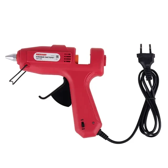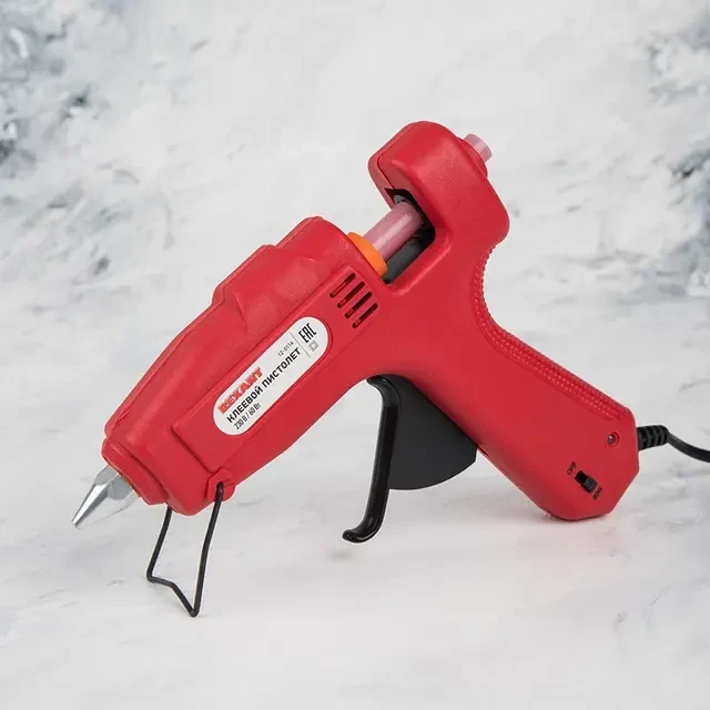 Клеевой пистолет предназначен склеивания поверхностей различных материалов, герметизации стыков и швов, фиксации проводов с помощью расплавленной клеевой массы. Используется в ремонте, декорировании, в изготовлении поделок и моделировании; будет полезен как на производстве, так и в быту. Корпус пистолета изготовлен из ударопрочной пластмассы, поэтому инструмент служит дольше, а металлическая скоба позволяет устанавливать пистолет в режиме ожидания. Сопло пистолета защищено клапаном от произвольного вытекания клея. На корпусе пистолета есть кнопка включения, благодаря которой пользователю удобнее контролировать использование пистолета. Также на корпусе есть индикатор, который показывает, что включен режим нагрева. Пистолет используется с клеевыми стрежнями диаметром 11 мм. Комплектация: клеевой пистолет (1 шт.), паспорт (1 шт.). ОСНОВНЫЕ ПРЕИМУЩЕСТВА 1. Быстрый нагрев. 2. Защита от произвольного вытекания клея из плавильной камеры. 3. Стабильная температура при постоянной работе. 4. Возможность управления одной рукой, легкий контроль плавления и подачи клея. 5. Индикация демонстрирует наличие питания (LED-лампочки красного цвета на корпусе).