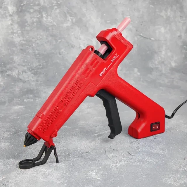 Клеевой пистолет предназначен склеивания поверхностей различных материалов, герметизации стыков и швов, фиксации проводов с помощью расплавленной клеевой массы. Используется в ремонте, декорировании, в изготовлении поделок и моделировании; будет полезен как на производстве, так и в быту. Корпус пистолета изготовлен из ударопрочной пластмассы, поэтому инструмент служит дольше, а специальная скоба с нишей для сбора капель клея позволяет устанавливать пистолет в режиме ожидания. Сопло пистолета защищено клапаном от произвольного вытекания клея и оснащено термостойким силиконовым протектором, минимизирующим риск ожогов при случайном контакте и защищающим рабочую зону от высокой температуры. На корпусе пистолета есть кнопка включения, благодаря которой пользователю удобнее контролировать использование пистолета. Пистолет используется с клеевыми стрежнями диаметром 11 мм. Комплектация: клеевой пистолет (1 шт.), паспорт (1 шт.), клеевые стержни (2 шт.). ОСНОВНЫЕ ПРЕИМУЩЕСТВА 1. Быстрый нагрев. 2. Защита от произвольного вытекания клея из плавильной камеры. 3. Стабильная температура при постоянной работе. 4. Термостойкий силиконовый протектор сопла с длительным сроком службы. 5. Возможность управления одной рукой, легкий контроль плавления и подачи клея.
