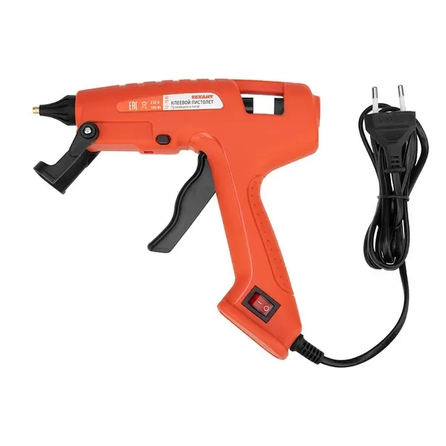 Клеевой пистолет предназначен склеивания поверхностей различных материалов, герметизации стыков и швов, фиксации проводов с помощью расплавленной клеевой массы. Используется в ремонте, декорировании, в изготовлении поделок и моделировании; будет полезен как на производстве, так и в быту. Корпус пистолета изготовлен из ударопрочной пластмассы, поэтому инструмент служит дольше, а специальная скоба автоматически выпадает при нажатии кнопки и позволяет устанавливать пистолет в режиме ожидания. Эргономичная рукоятка обеспечивает комфортный и надежный захват инструмента. Сопло пистолета защищено клапаном от произвольного вытекания клея и оснащено термостойким силиконовым протектором, минимизирующим риск ожогов при случайном контакте и защищающим рабочую зону от высокой температуры. Есть возможность удлинить сопло с помощью специального наконечника (12-1680). Автоматическое регулирование температуры внутри плавильной камеры позволяет поддерживать оптимальную для клеевых стрежней температуру. На корпусе пистолета есть кнопка включения, благодаря которой пользователю удобнее контролировать использование пистолета. Провод длиной 1,4 метра позволяет работать на удобном расстоянии от розетки. Пистолет используется с клеевыми стрежнями диаметром 11 мм. Комплектация: клеевой пистолет (1 шт.), паспорт (1 шт.). ОСНОВНЫЕ ПРЕИМУЩЕСТВА 1. Быстрый нагрев. 2. Защита от произвольного вытекания клея из плавильной камеры. 3. Стабильная температура при постоянной работе. 4. Интерактивный керамический нагреватель, позволяющий экономить до 50 % электроэнергии. 5. Термостойкий силиконовый протектор сопла с длительным сроком службы. 6. Возможность управления одной рукой, легкий контроль плавления и подачи клея. 7. Автоматическая регулировка температуры в плавильной камере, подходящая для универсальных клеевых стержней ЭВА. 8. Запатентованная технология плавильной камеры помогает избегать переполнения, утечки и обратного потока клея. 9. Запатентованная облегченная конструкция корпуса пистолета, позволяющая работать долгое время без напряжения рук. 10. Новая конструкция спускового механизма делает подачу клея легкой и удобной, что расширяет спектр применения устройства.