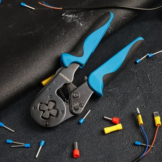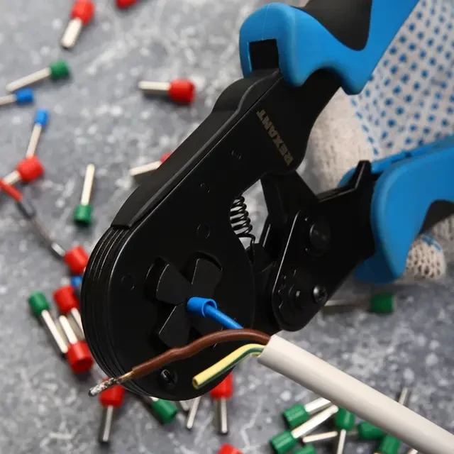 Кримпер HT-8164 предназначен для опрессовки штыревых наконечников сечением 6–16 мм². Корпус инструмента изготовлен из высокопрочной хром-ванадиевой стали с воронением, что обеспечивает длительный срок службы и устойчивость к механическим нагрузкам. Четырехсегментная саморегулирующаяся матрица с системой поворотных кулачков диафрагменного типа выполняет квадратный профиль обжима, обеспечивая равномерное распределение силы. Регулятор давления позволяет настроить оптимальное усилие обжима для разных типов клемм. Возвратный механизм автоматически возвращает ручки в исходное положение после каждого цикла обжима. Храповой механизм обеспечивает качественную опрессовку без преждевременного разжатия ручек. Двухкомпонентные нескользящие рукоятки выполнены из плотного синтетического материала, что делает работу комфортной и безопасной даже при длительном использовании.