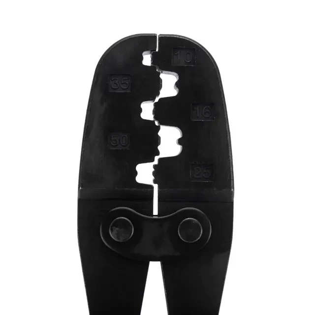 Механический пресс HT-50WF для обжима изолированных и неизолированных втулочных наконечников сечением 10–50 мм² и 2х6–2х16 мм². Корпус пресса изготовлен из закаленной инструментальной стали с воронением, благодаря чему устойчив к механическим воздействиям и имеет продолжительный срок службы. Профилированные пятипозиционные обжимные губки предназначены для надежного захвата и эффективного обжима соединительных элементов. Храповой механизм производит полный цикл качественной опрессовки. Конструкция, выполненная по принципу "двойной рычаг", позволяет прикладывать меньше усилий для обжима. На губки нанесена справочная маркировка для удобного и быстрого поиска нужной позиции в матрице. Однокомпонентные защитные рукоятки выполнены из плотного нескользящего синтетического материала, который делает работу с инструментом легкой и приятной.