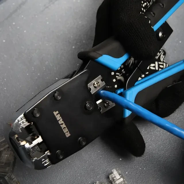 Кримпер HT-500R ТАЙВАНЬ предназначен для обжима компьютерных и телефонных разъемов RJ-45, RJ-12, RJ-11. Корпус кримпера изготовлен из высокопрочной хром-ванадиевой стали с воронением, благодаря чему устойчив к механическим воздействиям и имеет продолжительный срок службы. Обладает дополнительными функциями обрезки проводов и снятия изоляции с плоских и круглых кабелей. Оснащен возвратным механизмом, который обеспечивает обратный ход рукояток и упрощает процесс работы с инструментом. Храповой механизм производит полный цикл качественной опрессовки. Двухкомпонентные защитные рукоятки выполнены из плотного нескользящего синтетического материала, который делает работу с инструментом легкой и приятной.