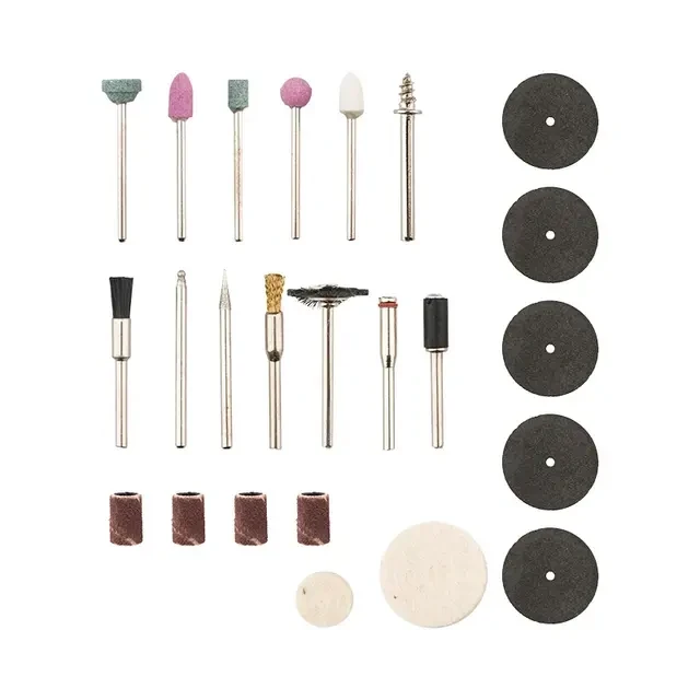 Гравер предназначен для выполнения точной резьбы, гравировки, шлифовки, полировки или резки различных материалов. Пригодится в ремесленной и художественной деятельности, при выполнении мелких ремонтных и отделочных работ. Гравер работает на двух скоростях: 5000 и 18000 оборотов в минуту. Первая скорость более эффективна при работе с мягкими материалами: с деревом, пластиком, мягкими металлами. Вторая скорость позволяет работать с более твердыми материалами, а также шлифовать и полировать поверхности. Источник питания гравера – адаптер 18 В, который входит в комплект. В комплект также входит 26 аксессуаров, которые предназначены для выполнения различных задач. Комплектация: гравер (1 шт.), адаптер (1 шт.), отрезной круг (5 шт.), цилиндр наждачный (4 шт.), алмазный шлифовальный наконечник (2 шт.), камень шлифовальный (5 шт.), щетка фронтальная (2 шт.), щетка горизонтальная (1 шт.), фетровый полировальный круг (2 шт.), сверло по металлу (5 шт.), патрон латунный зажимной (5 шт.), держатель отрезных кругов (1 шт.), держатель полировального круга (1 шт.), держатель наждачных цилиндров (1 шт.). ПРЕИМУЩЕСТВА • Плавная регулировка оборотов для различных целей при работах с деревом, металлом, пластиком и прочими материалами • 26 насадок (34 аксессуара) для работ с разными поверхностями