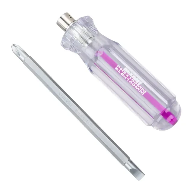 Комбинированная отвертка арт.12-4742 REXANT предназначена для монтажа/демонтажа крепежных соединений. Двухсторонний стержень инструмента выполнен из высококачественной хромованадиевой стали. С одной его стороны располагается шлиц PH2, с другой – SL6. Наконечники намагничены, благодаря чему шуруп, саморез или винт не упадет при извлечении или установке. Прозрачная эргономичная рукоятка делает работу с инструментом легкой и удобной. Длина двухстороннего стержня 120 мм. Шлицы: PH2, SL6.