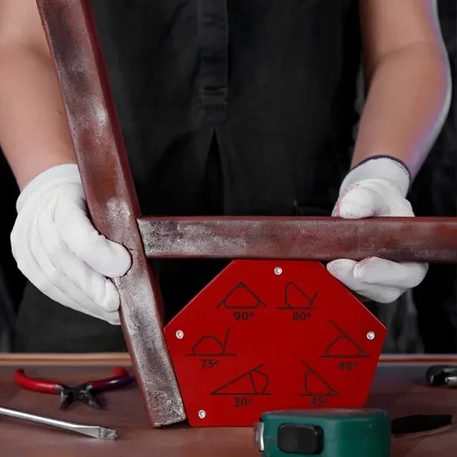 Магнитный угольник держатель для сварки на 6 углов, усилие 34 кг REXANT, предназначен для фиксации металлических деталей при сварке, пайке и сборке конструкций. Применяется для работы с круглыми и прямоугольными трубами, полосами, уголками, профилями, листовым, сплошным и другими видами металла. Угольник быстро и надежно соединяет детали, сокращает время работы, облегчает монтаж и заменяет громоздкие зажимы и неудобные струбцины. Размер: 105х80х14 мм Углы: 30°, 45°, 60°, 75°, 90°, 135° Максимальное усилие: 34 кг (75 Lbs)