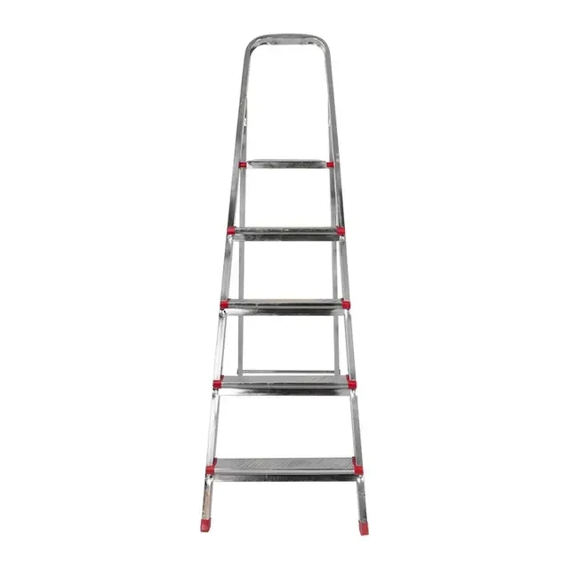 Стремянка металлическая состоит из 5 ступенек, применяется как в строительных целях, так и в быту, дома, на даче, в гараже и саду. Специальное соединительное ушко обеспечивает устойчивость конструкции и надежную фиксацию оборудования в рабочем положении. Ножки лестницы изготовлены в пластиковом покрытии; это предотвращает скольжение и защищает напольное покрытие от царапин, а упрочненное крепление ножек предотвращает их выпадение. Гальваническое покрытие гарантирует устойчивость к коррозии и защищает от негативного воздействия окружающей среды. Стремянка из усиленного профиля с 5 широкими ступенями с противоскользящим рифлением не занимает много места. Использование качественных материалов позволяет нагружать стремянку массой до 150 кг. Изготовлена в России. Технические характеристики: Количество ступенек: 5 Высота площадки: 102 см Высота стремянки в разложенном состоянии: 147 см Габаритная высота: 160 см Ширина: 46 см Длина: 99 см Вес: 5,9 кг Максимальная нагрузка: 150 кг