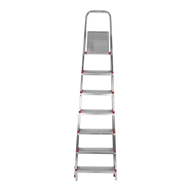 Стремянка металлическая состоит из 7 ступенек, применяется как в строительных целях, так и в быту, дома, на даче, в гараже и саду. Специальное соединительное ушко обеспечивает устойчивость конструкции и надежную фиксацию оборудования в рабочем положении. Ножки лестницы изготовлены в пластиковом покрытии; это предотвращает скольжение и защищает напольное покрытие от царапин, а упрочненное крепление ножек предотвращает их выпадение. Гальваническое покрытие гарантирует устойчивость к коррозии и защищает от негативного воздействия окружающей среды. Стремянка из усиленного профиля с 7 широкими ступенями с противоскользящим рифлением не занимает много места. Использование качественных материалов позволяет нагружать стремянку массой до 150 кг. Изготовлена в России. Технические характеристики: Количество ступенек: 7 Высота площадки: 146 см Высота стремянки в разложенном состоянии: 189 см Габаритная высота: 208 см Ширина: 51 см Длина: 130 см Вес: 7,8 кг Максимальная нагрузка: 150 кг