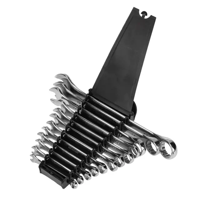 Набор комбинированных гаечных ключей REXANT незаменим при монтаже и демонтаже резьбовых соединений: болтов, гаек, муфт и т. д. С одной стороны инструменты имеют рожковый профиль с захватом открытого типа, а с другой – накидной профиль с кольцевым типом. В наборе содержатся ключи следующих размеров: 6, 7, 8, 9, 10, 11, 12, 13, 14, 17, 19, 22 мм. Количество граней ключей: 12. Материал изготовления – хромованадиевый сплав, которая отличается прочностью, жесткостью и устойчивость к износу. Хромовое покрытие защищает изделия от образования ржавчины и увеличивает срок их службы. Комбинированные гаечные ключи просты в обращении и обеспечивают доступ к любому крепежу. Для удобства транспортировки и хранения ключи поставляются в пластиковом футляре.