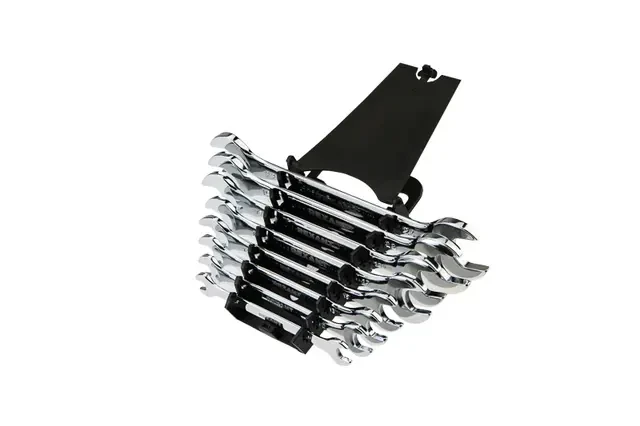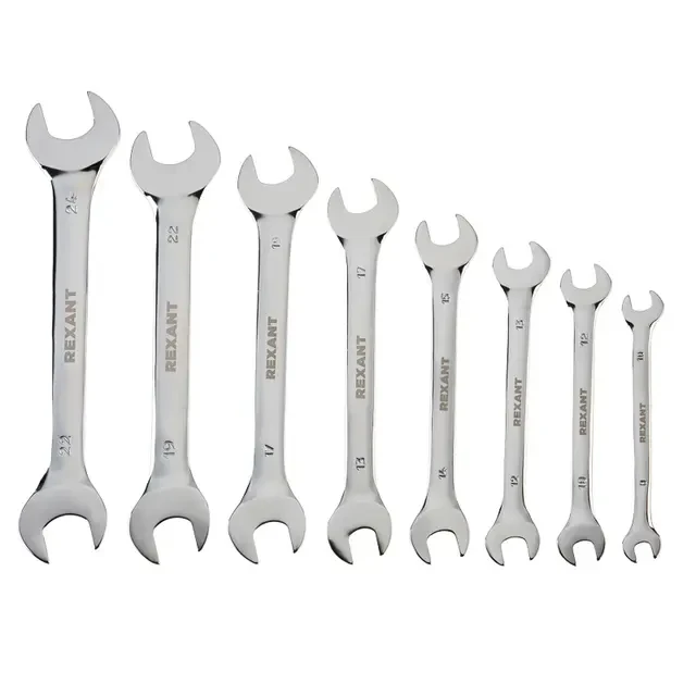 Набор рожковых гаечных ключей REXANT предназначен для монтажа и демонтажа резьбовых соединений: болтов, гаек, муфт и т. д. Хромованадиевый сплав, из которого изготовлены ключи, обладает такими свойствами, как прочность, жесткость, устойчивость к износу. Инструменты обладают высокой устойчивостью к коррозии благодаря хромовому покрытию. Просты в обращении и обеспечивают доступ к любому крепежу. Размеры: 8х10, 10х12, 12х13, 14х15, 13х17, 17х19, 19х22, 22х24 мм. Ключи поставляются в пластиковом футляре для удобного хранения и транспортировки.