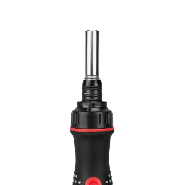 Набор головок и бит с реверсивной отверткой REXANT 21 в 1 применяется для монтажа и демонтажа винтов, шурупов, саморезов и других крепежных изделий. Насадки выполнены из качественной хромованадиевой стали, биты имеют намагниченные наконечники. Трехкомпонентная прорезиненная рукоятка с магнитным держателем не скользит и не прокручивается в ладони, что обеспечивает комфорт при работе. Реверсивный механизм срабатывает как по часовой стрелке, так и против часовой стрелки, а также имеет фиксацию положения. Для удобного хранения и транспортировки насадок предусмотрены пластиковые подставки. В основании инструмента есть отверстие для подвеса В наборе поставляются: биты SL3.0, SL5.0, SL6.0, PH1, PH2, PH3, T10, T15, T20; головки M5, M6, M7, M8, M9, M10, M11, M12, M13; переходник: AD (□) и жесткий удлинитель.