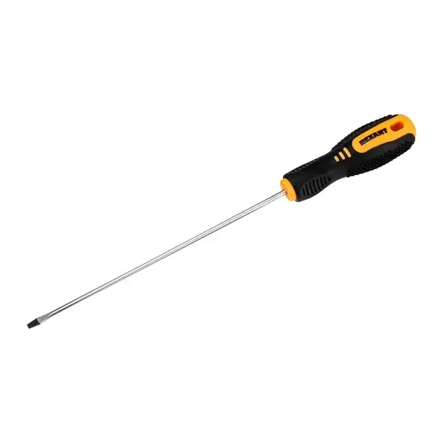 Отвертка шлицевая REXANT используется для монтажа и демонтажа резьбовых соединений (шурупов, саморезов), имеющих на головке прямой паз. Оснащена эргономичной двухкомпонентной рукояткой, которая предотвращает скольжение в ладони и обеспечивает более комфортную работу. Инструмент обладает стержнем, который изготовлен из высококачественной хромованадиевой стали, характеризующейся высокой стойкостью к коррозии. Благодаря оксидированному намагниченному наконечнику крепежная деталь не упадет при извлечении или установке. В основании инструмента предусмотрено отверстие для его подвеса.
