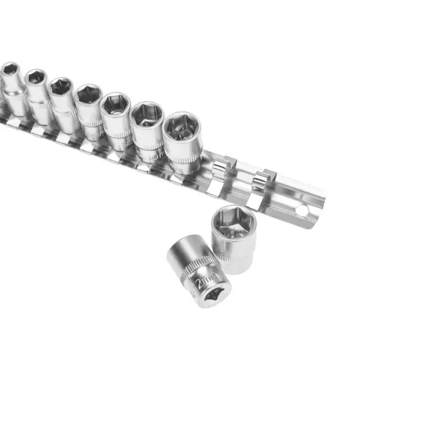 Набор головок REXANT используется для монтажа и демонтажа резьбовых соединений. Инструменты изготовлены из хромованадиевой износостойкой и долговечной стали с хромоникелевым покрытием. Твердость материала рабочей части головок – 42 HRС. В набор входят 6-гранные торцевые головки на планке под квадрат 1/4" следующих размеров: 4, 5, 6, 7, 8, 9, 10, 11, 12 и 13 мм. Ярко-красная полоска, нанесенная на головки, предназначена для удобного поиска. Изделия поставляются на металлической планке и упакованы в блистер.