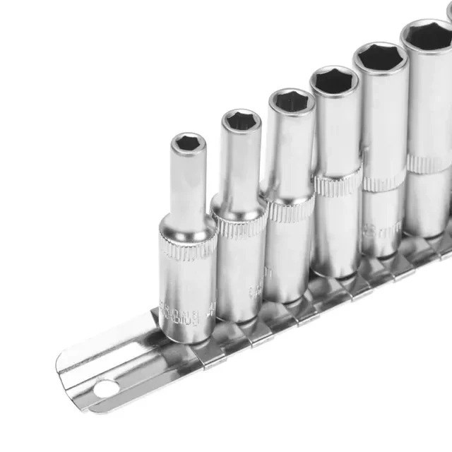 Набор удлиненных торцевых головок REXANT используется для монтажа и демонтажа резьбовых соединений. Широко применяется при ремонте автомобилей и различного оборудования. Инструменты изготовлены из хромованадиевой износостойкой и долговечной стали с хромоникелевым покрытием. Твердость материала рабочей части головок – 42 HRС. В набор входят 6-гранные удлиненные торцевые головки на планке под квадрат 1/4" следующих размеров: 4, 5, 6, 7, 8, 9, 10, 11, 12 и 13 мм. Ярко-красная полоска, нанесенная на головки, предназначена для удобного поиска. Изделия поставляются на металлической планке и упакованы в блистер.