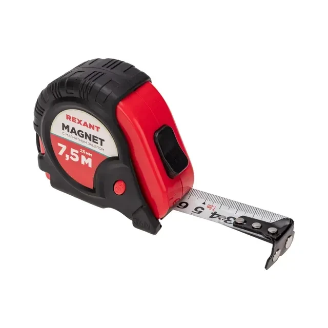Рулетка измерительная Профи прорезиненный корпус, магнитная, 7,5м х 25мм REXANT