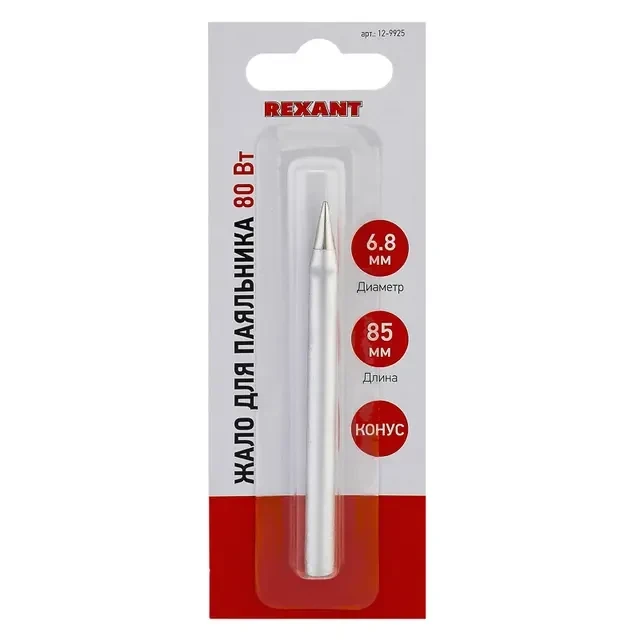 Жало для паяльника долговечное 80Вт, ?6,8мм, тип конус, блистер REXANT