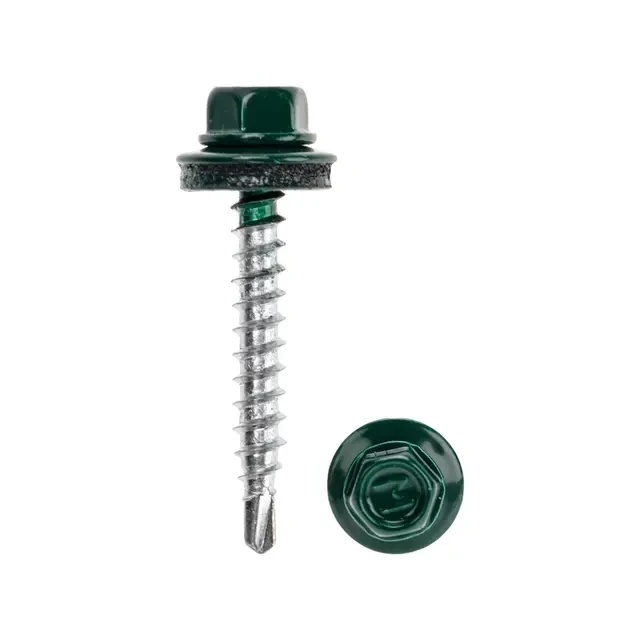 Кровельный саморез 4,8х35 мм с внешней шестигранной головкой предназначен для монтажа кровли к деревянной обрешетке и тонкостенным металлическим конструкциям. Саморезы изготовлены из стали и покрыты цинком, что делает их устойчивыми к коррозии и механическим повреждениям, что особенно важно при эксплуатации на крыше, где материал подвергается воздействию атмосферных факторов. EPDM-уплотнитель на шляпке обеспечивает плотное и герметичное соединение элементов кровли. Наконечник-сверло легко проникает в материал толщиной до 5 мм без предварительного сверления, что упрощает процесс монтажа. Шестигранная головка самореза покрыта порошковой краской RAL 6005, благодаря чему подобрать саморез под цвет крыши становится проще. Поставляются в крафтовой коробке в количестве 250 штук.