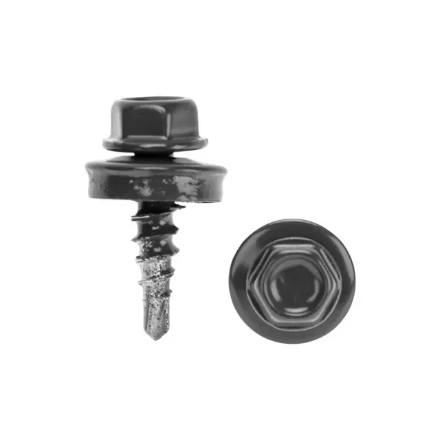 Кровельный саморез 4,8х19 мм с внешней шестигранной головкой предназначен для монтажа кровли к деревянной обрешетке и тонкостенным металлическим конструкциям. Саморезы изготовлены из стали и покрыты цинком, что делает их устойчивыми к коррозии и механическим повреждениям, что особенно важно при эксплуатации на крыше, где материал подвергается воздействию атмосферных факторов. EPDM-уплотнитель на шляпке обеспечивает плотное и герметичное соединение элементов кровли. Наконечник-сверло легко проникает в материал толщиной до 5 мм без предварительного сверления, что упрощает процесс монтажа. Шестигранная головка самореза покрыта порошковой краской RAL 7024, благодаря чему подобрать саморез под цвет крыши становится проще. Поставляются в крафтовой коробке в количестве 250 штук.