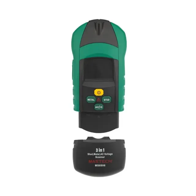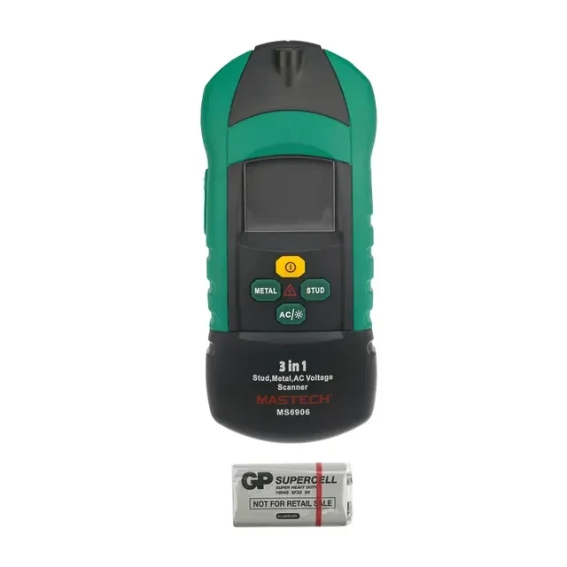 MASTECH MS 6906 — это многофункциональный прибор, включающий в себя большой набор возможностей. Предназначен для поиска металла, переменного напряжения, а также скрытых конструкций. С его помощью вы сможете обнаружить винты, гвозди, саморезы, шпильки, иголки и другие металлические предметы на глубине до 30 мм, металлические трубы на глубине до 60 мм и напряжение на глубине до 75 мм. Результаты поиска отражаются на дисплее прибора и обозначаются с помощью звукового сигнала. Прибор окажется незаменим при ремонтных работах, на строительных площадках и даже дома, в быту. С его помощью вы сможете обнаружить даже неисправную проводку и при ремонте вам не придется ломать всю стену. Вы сможете найти затерявшуюся иголку или гвоздь, которые могли провалиться в щели между досками, и многое другое. Прибор изготовлен из высококачественных материалов и имеют эргономичный дизайн. Калибровка и тестирование приборов произведены под контролем компании СДС. Характеристики: Обнаружение: отображение результата на дисплее и звуковой сигнал Обнаружение переменного напряжения: да Обнаружение металла: да Автоматический режим работы Автовыключение Размер: 160х74х42 мм Тип батареи: 9 В «Крона» Вес: 154 г