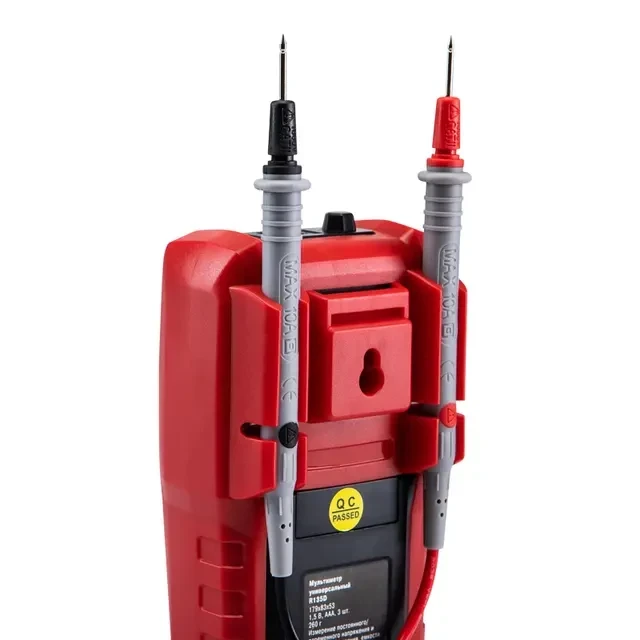 Многофункциональный цифровой мультиметр R135D REXANT сочетает высокую точность, удобство использования и широкий спектр функций. Прибор оснащен ручным выбором пределов измерений и большим дисплеем на 4000 разрядов. Среднеквадратичный метод измерения значений (True RMS) гарантирует точные результаты измерений. Графическая шкала выбора режима измерений упрощает процесс работы. Параметры измерений: Постоянное напряжение: 400мВ/4В/40В/400В/1000В ± (0.5%) Переменное напряжение: 4В/40В/400В/750В ± (8.0%) Постоянный/переменный ток: 400мкA/4000мкA /40мA/400мA/10A ± (1.2%/1.5%) Сопротивление: 400Ом/4кОм/40кОм/400кОм/4МОм/40MОм ± (1.5%) Емкость: 4нф/40нф/400нф/4мкф/40мкф/400мкф/4мф/40мф ± (5.0%) Частота: 4Гц/40Гц/400Гц/4кГц/40кГц/400кГц/4МГц ± (3.0%) Основные функции и особенности: Ручной выбор пределов измерений Среднеквадратичный метод измерения значений – True RMS Режим относительных измерений Бесконтактный детектор напряжения NCV с индикацией Функция памяти данных DATA HOLD Режим «прозвонка», диод- тест Световая и звуковая индикация нейтрали/фазы (LIVE TEST) Определение последовательности трех фаз Тест батарей Аналоговая шкала Разрядность дисплея: 4000 отсчетов Количество измерений в секунду: 3 Автоматическое отключение питания через 15 минут Батареи: 1,5 В ААА, 3 шт. Вес с батареями: 260 г Габариты: 179х83х53 мм Комплект поставки: мультиметр, измерительные щупы, батареи, инструкция