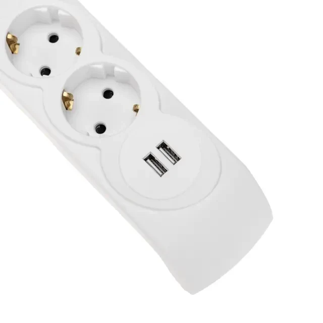 Сетевой фильтр KRANZ предназначен для защиты электроприборов от скачков напряжения, коротких замыканий, помех и перегрузок в сети. Использование сетевого фильтра позволит обезопасить компьютерную, офисную, аудио-видео и бытовую технику от помех, искажений и перегрузок в электрической сети. При превышении допустимых значений фильтр автоматически отключается, что защищает подключенные устройства от повреждений и продлевает срок службы. Каждое гнездо имеет заземление, что гарантирует высокий уровень безопасности при эксплуатации. 2 USB-разъема позволяют заряжать мобильные устройства и другие гаджеты без использования адаптеров питания.