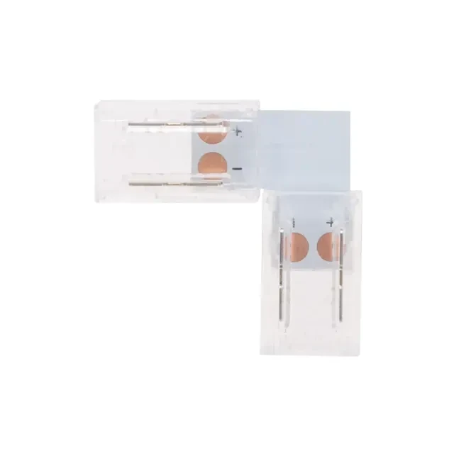 L-образный коннектор – это устройство, предназначенное для соединения нескольких отрезков одноцветных светодиодных лент COB шириной 8 мм. Коннектор выполнен в L-образной форме, позволяющей удобно и безопасно подключить ленты друг к другу под углом 90 градусов. Изделие представляет собой удобное решение для создания более сложных конфигураций и эффектов освещения в пространстве. С двух сторон коннектора располагаются защелкивающиеся механизмы, которые обеспечивают надежное соединение лент и предотвращают их случайное разъединение. Процесс установки происходит быстро и просто, так как не требует пайки или специальных инструментов. Напряжение от 5 до 24В.