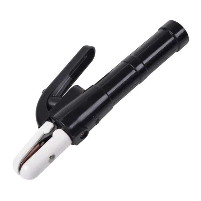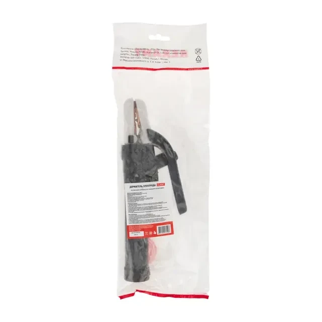 Держатель электрода REXANT 300 А предназначен для фиксации электрода при проведении ручной сварки. Прочный и универсальный в применении инструмент гарантирует жесткую фиксацию широкого диапазона используемых габаритов электродов и сварочного кабеля. Производителем предусмотрена надежная фиксация электрода в четырех положениях благодаря рельефу зажимной пластины. Удобная ручка надежно изолирована пластиковым материалом, который выдерживает высокие механические и технические нагрузки. Габаритные размеры: 230x35x35 мм Диаметр применяемых электродов: 2,0-6,0 мм Масса: 0.26 кг Наибольший сварочный ток при ПВ=35%: 300 А Номинальный сварочный ток: 300 А Продолжительность цикла сварки: 5 мин Сечение жилы подсоединяемого сварочного кабеля: до 50 мм² Угол закрепления электрода без подгиба, с подгибом: 0...270° Усилие прижатия электрода: 12.5-25 кгс Напряжение: до 50 В