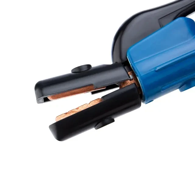 Держатель электрода REXANT 300А E-type предназначен для фиксации электрода при проведении ручной сварки. Прочный и универсальный в применении инструмент гарантирует жесткую фиксацию широкого диапазона используемых габаритов электродов и сварочного кабеля. Производителем предусмотрена надежная фиксация электрода в четырех положениях благодаря рельефу зажимной пластины. Удобная ручка надежно изолирована пластиковым материалом, который выдерживает высокие механические и технические нагрузки. Габаритные размеры: 230x35x35 мм Диаметр применяемых электродов: 2,0-5,0 мм Масса: 0.26 кг Наибольший сварочный ток при ПВ=35%: 300 А Номинальный сварочный ток: 300 А Продолжительность цикла сварки: 5 мин Сечение жилы подсоединяемого сварочного кабеля: до 50,0 мм² Угол закрепления электрода без подгиба, с подгибом: 0…270° Усилие прижатия электрода: 12.5-25 кгс Напряжение: до 50 В