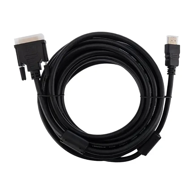 Шнур HDMI - DVI-D REXANT предназначен для передачи цифрового видеоизображения высокого разрешения и многоканального аудио сигнала. Используется для совместной работы устройств, имеющих разъемы DVI-D и HDMI: проекторы, телевизоры, компьютеры и ноутбуки, мультимедийные проигрыватели и т.д. С одной стороны устройства расположен штекер разъема HDMI, а с другой – штекер разъема DVI. Наличие ферритовых фильтров способствует подавлению помех и обеспечивает воспроизведение абсолютно точного оригинального сигнала. Для производства жил используется только первичная, технически чистая медь (99%). На контакты разъемов нанесен слой золота по технологии вакуумного напыления, что обеспечивает повышение качественных показателей изображения и звука, а также отсутствие помех при передаче сигналов. Штекеры выполнены из легкого и прочного пластика. Длина шнура составляет 7 м. Поставляется в ПВХ упаковке.