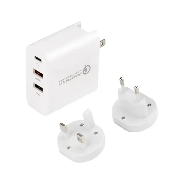 Сетевое зарядное устройство пополнит заряд батареи любимого смартфона или планшета в считанные минуты. Изделие осуществит быструю и безопасную зарядку вашего гаджета, защищая его от перепадов в сети переменного тока. Легкий и компактный адаптер удобно брать с собой в длительные поездки, путешествия, на дачу и в командировки. Подбирайте адаптер исходя из необходимой мощности для зарядки устройства. Тип: USB + Type-C Входное напряжение: AC 110-240V Выход 3 гнезда: 2хUSB-A, USB-C Размер: 58х43х23 мм Цвет корпуса: белый