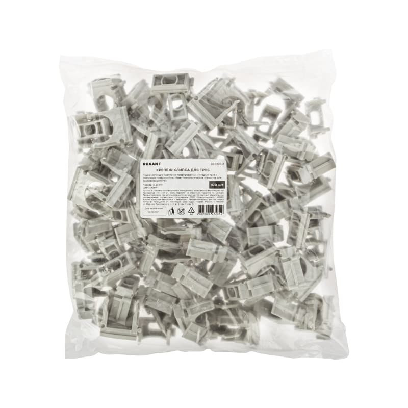 Крепеж-клипса для труб ?20мм, серая (100 шт/уп) REXANT