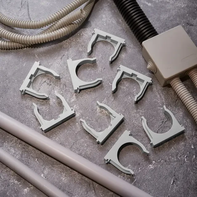 Крепеж-клипса для монтажного пистолета предназначен для крепления пластиковых труб к стене, потолку или полу. Выдерживает повышенные механические нагрузки, возникающие при монтаже с использованием пневмопистолета. Изготовлен из качественных материалов по современным технологиям пластикового литья. Изделие оснащено фиксаторами типа "шип-паз": при установке возможно соединять крепежи-клипсы различных диаметров. Для установки элемента предусмотрено технологическое отверстие под дюбель или саморез, а также уменьшенное отверстие под гвоздь по бетону. Широкие лапки изделия обеспечивают надежную фиксацию труб без возникновения замятий. Благодаря качественному пластику и прочным ребрам жесткости крепеж-клипса не ломается и не ослабляется под воздействием низких и высоких температур.