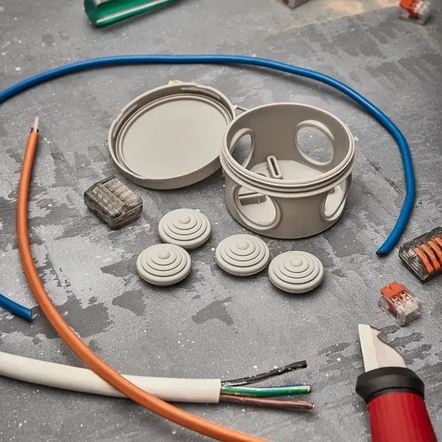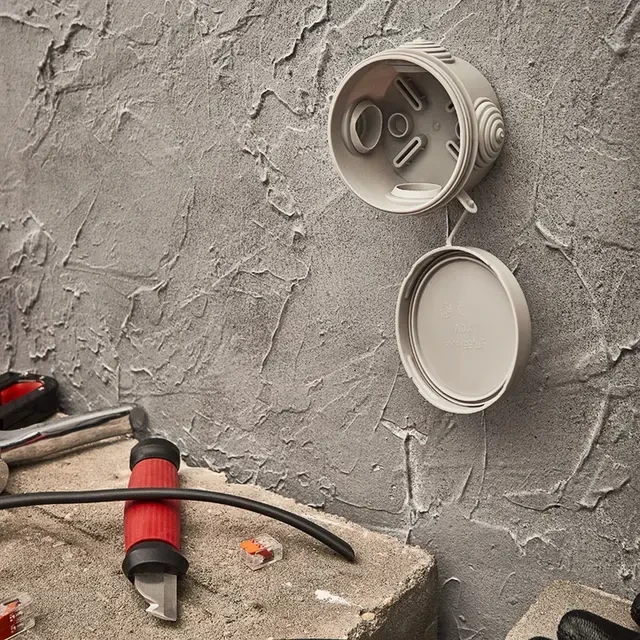 Распаячная коробка предназначена для защиты кабельных соединений от пыли, влаги и механических повреждений. Предназначена для крепления на стены, потолки, лотки. Укомплектована вводными сальниками. Характеристики: Размер: Ø 65х40 мм Степень защиты: IP54 Цвет: серый Количество вводов: 4 Материал: полипропилен