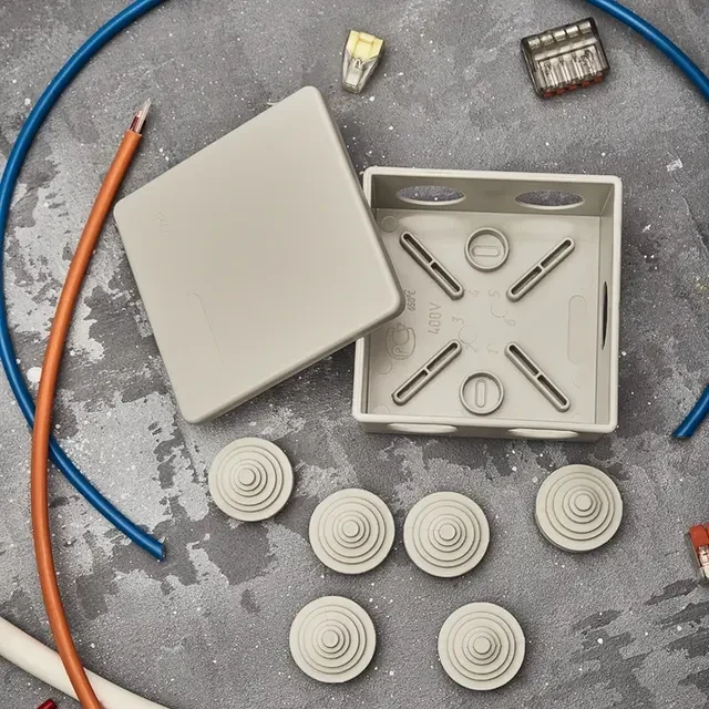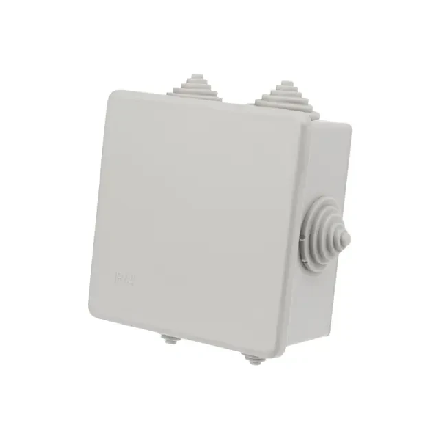 Распаячная коробка предназначена для защиты кабельных соединений от пыли, влаги и механических повреждений. Предназначена для крепления на стены, потолки, лотки. Укомплектована вводными сальниками. Характеристики: Размер: 85х85х40 мм Степень защиты: IP44 Цвет: серый Количество вводов: 6 (d 23мм) Материал: полистирол