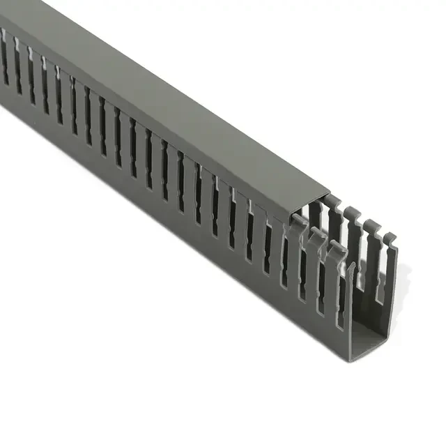 Перфорированный кабель-канал REXANT предназначен для организации кабельной разводки в электрораспределительных шкафах. Предохраняет проводку от механических повреждений, обеспечивает электробезопасность, доступ к кабелю при аварийной ситуации и является отличным дополнительным изолятором. Позволяет осуществлять монтаж проводки в сжатые сроки и существенно снизить трудозатраты при установке. Кабель-канал представляет собой профиль прямоугольного сечения 25х60 мм, укомплектованный крышкой, которую при необходимости можно снять и после чего модернизировать или дополнять проводку. Перфорации на стенках кабель-канала обеспечивают оптимальную вентиляцию и предотвращают перегрев кабелей. Самоклеящийся слой на задней стороне изделия позволяет легко закрепить его на стенах или других поверхностях без использования дополнительных инструментов. В упаковке поставляется 48 метров кабель-канала (отрезки по 2 м). Материал изготовления – самозатухающая композиция ПВХ. Цвет – серый RAL 7030. Степень защиты IP20.