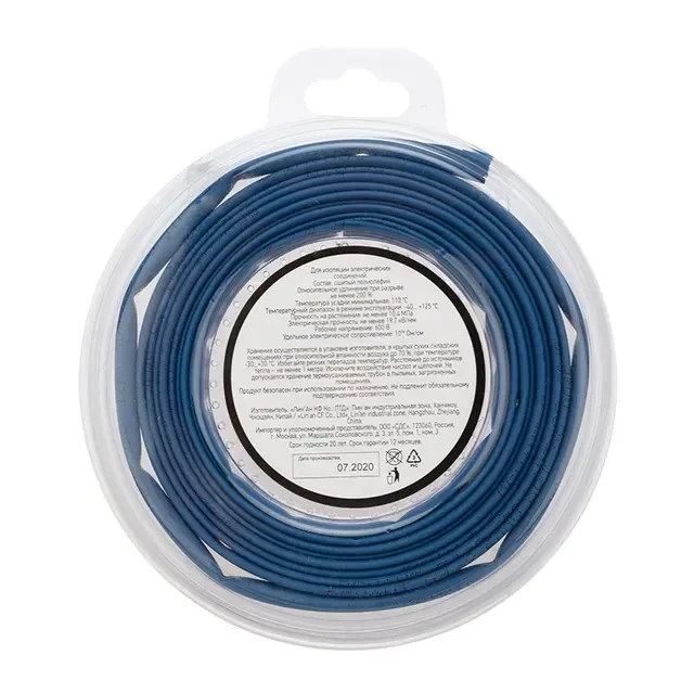 Термоусаживаемая трубка предназначена для восстановления и создания изоляции, герметизации поверхностей и электрических соединений кабелей, бандажирования и маркировки проводов, а также для создания антикоррозийных защитных покрытий. Термоусаживаемая трубка меняет свой диаметр в результате нагрева и принимает форму предмета или материала, на который совершается усадка. Трубка не поддерживает горение: в отсутствие открытого огня затухает и не воспламеняется. Это обеспечивает дополнительную безопасность в случае возникновения пожара. Изделие поставляется в удобном ролике, что позволяет легко отмерить и отрезать необходимую длину, минимизируя отходы. Рекомендуем проводить работы по усадке трубок с помощью специальных электромонтажных фенов и газовых горелок REXANT. Гарантийный срок эксплуатации – 7 лет. Гарантийный срок хранения – 7 лет. Относительное удлинение при разрыве: не менее 200%. Прочность на растяжение: не менее 10,4 Мпа. Электрическая прочность: не менее 19,7 кВ/мм. Рабочее напряжение: 600 В. Удельное электрическое сопротивление: 10^14 Ом/см.