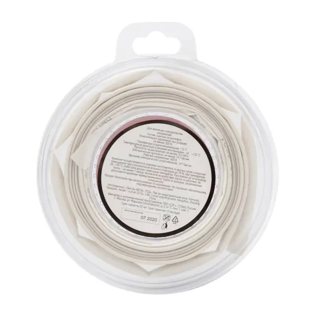 Термоусаживаемая трубка предназначена для восстановления и создания изоляции, герметизации поверхностей и электрических соединений кабелей, бандажирования и маркировки проводов, а также для создания антикоррозийных защитных покрытий. Термоусаживаемая трубка меняет свой диаметр в результате нагрева и принимает форму предмета или материала, на который совершается усадка. Трубка не поддерживает горение: в отсутствие открытого огня затухает и не воспламеняется. Это обеспечивает дополнительную безопасность в случае возникновения пожара. Изделие поставляется в удобном ролике, что позволяет легко отмерить и отрезать необходимую длину, минимизируя отходы. Рекомендуем проводить работы по усадке трубок с помощью специальных электромонтажных фенов и газовых горелок REXANT. Гарантийный срок эксплуатации – 7 лет. Гарантийный срок хранения – 7 лет. Относительное удлинение при разрыве: не менее 200%. Прочность на растяжение: не менее 10,4 Мпа. Электрическая прочность: не менее 19,7 кВ/мм. Рабочее напряжение: 600 В. Удельное электрическое сопротивление: 10^14 Ом/см.