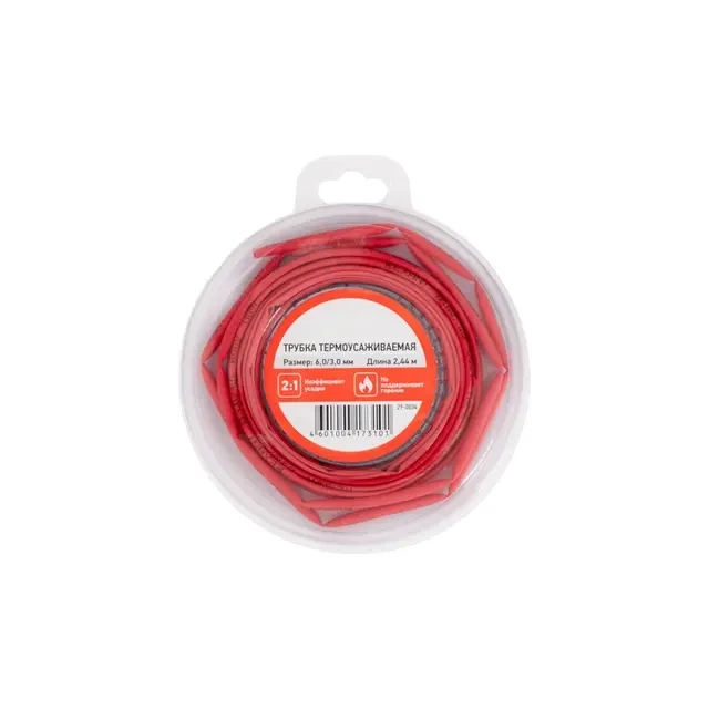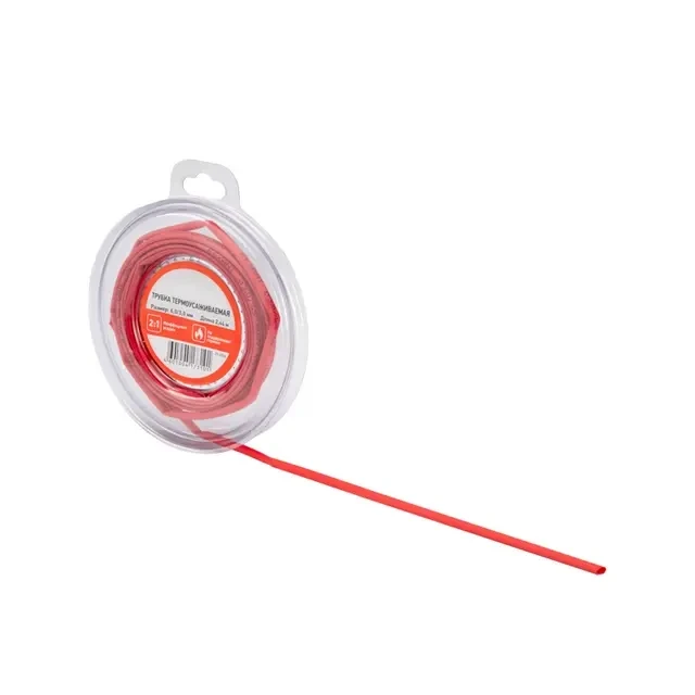 Термоусаживаемая трубка предназначена для восстановления и создания изоляции, герметизации поверхностей и электрических соединений кабелей, бандажирования и маркировки проводов, а также для создания антикоррозийных защитных покрытий. Термоусаживаемая трубка меняет свой диаметр в результате нагрева и принимает форму предмета или материала, на который совершается усадка. Трубка не поддерживает горение: в отсутствие открытого огня затухает и не воспламеняется. Это обеспечивает дополнительную безопасность в случае возникновения пожара. Изделие поставляется в удобном ролике, что позволяет легко отмерить и отрезать необходимую длину, минимизируя отходы. Рекомендуем проводить работы по усадке трубок с помощью специальных электромонтажных фенов и газовых горелок REXANT. Гарантийный срок эксплуатации – 7 лет. Гарантийный срок хранения – 7 лет. Относительное удлинение при разрыве: не менее 200%. Прочность на растяжение: не менее 10,4 Мпа. Электрическая прочность: не менее 19,7 кВ/мм. Рабочее напряжение: 600 В. Удельное электрическое сопротивление: 10^14 Ом/см.