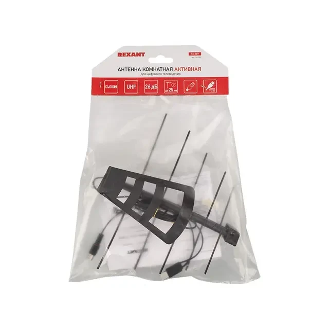 Активная комнатная антенна RX-269 REXANT используется для приема цифрового эфирного вещания на современных телевизорах или комбинированных ресиверах, укомплектованных тюнером стандарта DVB-T2. Антенна оснащена встроенным усилителем, который предотвращает помехи от базовых станций сотовой связи, что позволяет значительно улучшить прием в сложных условиях города или ближнего пригорода. Питание усилителя происходит от USB-инжектора, который подключается в соответствующий порт телевизора или блока питания с USB выходом. USB-инжектор входит в комплект поставки. Посмотреть зону покрытия цифрового ТВ (DVB-T2) вашего района или населенного пункта можно на официальном сайте ЦТВ: http://цтв.орг/зона-покрытия Антенна не работает без подачи питания. Масса: 0,4 кг.