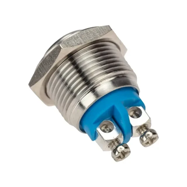 Кнопка антивандальная Ø16 Б/Фикс (2с винт) OFF-(ON) выпуклая REXANT предназначена для коммутации электрических цепей напряжением 250В путем включения-выключения питающего провода. Такие кнопки применяются в местах, где существует большой риск их повреждения (на различных производственных линиях, в лифтовых кабинах, около входной двери и т.д.). Главными отличительными особенностями антивандальной кнопки являются металлическое исполнение и неуязвимость контактной группы, что обеспечит ей долговечное функционирование. Изделие состоит из двух основных частей - лицевой части (головки) и контактной, и имеет пружинный возвратный механизм. Монтаж осуществляется без применения винтов на плоских панелях толщиной от 0.5мм до 3мм. Подключение проводов осуществляется с помощью винтовых зажимов. Основные характеристики: Номинальное напряжение и ток: 3A/36V(DC) 3A/250V(AC); Тип переключения: OFF-(ON); Количество контактных групп: 1; Количество контактов в контактной группе: 2; Фиксация положений: отсутствует; Индикатор коммутационных положений: отсутсвует; Установочный диаметр: 16мм; Рабочая температура: от -25℃ до +85℃; Степень защиты (IP): IP65; Ресурс: 10 000 циклов. Преимуществами использования данного изделия является надежность, быстрота и удобство монтажа.