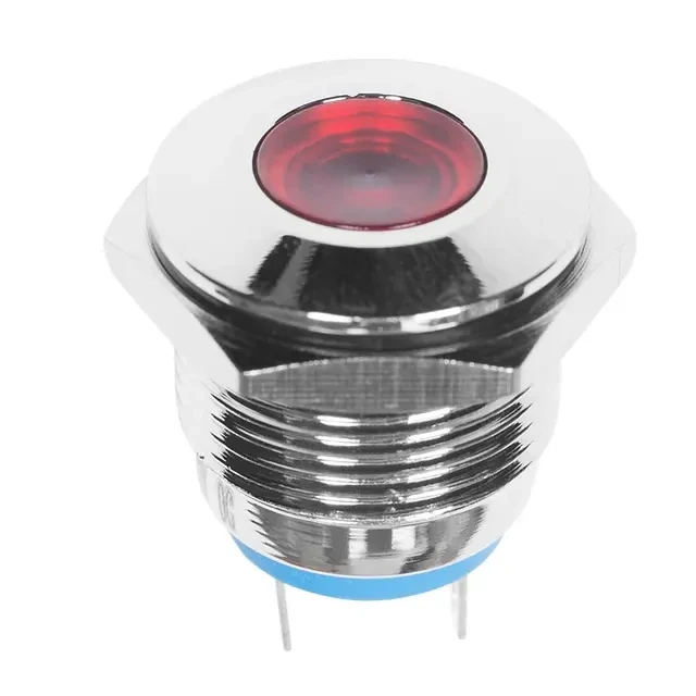 Индикатор металл Ø16 12В подсв/красная LED предназначен для индикации состояния электрических цепей. Такие индикаторы устанавливаются на лицевых панелях управления электрооборудованием (в объектах энергоснабжения, измерительных приборах, блоках питания, легковых и грузовых автомобилях, и других местах) с рабочим напряжением не более 12В. Разнообразные цветовые варианты исполнения позволяют эффективно комплектовать панели управления. Изделие состоит из двух основных частей - лицевой части (головки) и контактной. Монтаж осуществляется без применения винтов на плоских панелях толщиной от 0.5мм до 5мм, с помощью гайки. Подключение контактов осуществляется с помощью пайки. Основные характеристики: Номинальное напряжение: 12В; Номинальный ток: 15mA; Цвет индикации: красный LED; Установочный диаметр: 16мм; Рабочая температура: от -25℃..+55℃; Допустимая влажность: до 85%, без выпадения конденсата. Преимуществами использования данного изделия является увеличенная яркость индикации за счет LED подсветки, быстрота и удобство монтажа.