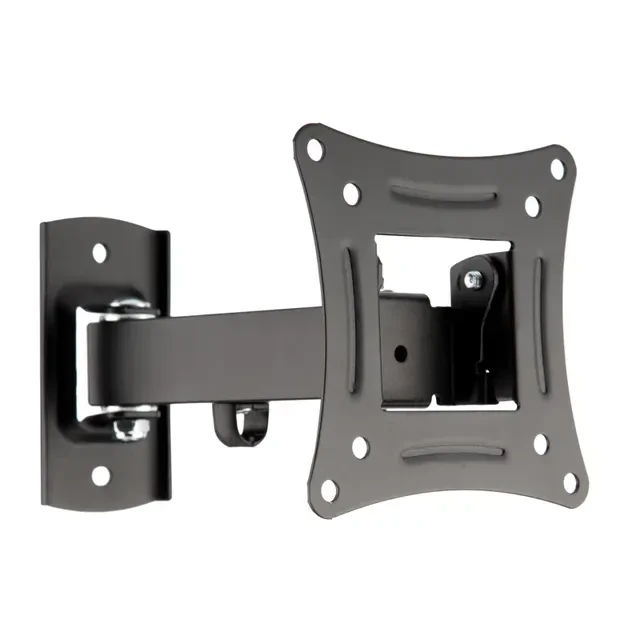 Кронштейн REXANT используется для крепления LED, LCD, PLASMA телевизоров 13"-37" дюймов к стене. Оснащен наклонно-поворотным механизмом (с 1 коленом), который позволяет свободно регулировать положение телевизора, что обеспечивает комфортный и удобный просмотр вне зависимости от Вашего расположения в комнате. В любой момент телевизор можно повернуть в нужную Вам сторону, выставить необходимый угол наклона и избежать бликов при смене освещения. Конструкция механизма позволяет точно и надежно фиксировать заданное положение с максимальной точностью. Кронштейн изготовлен из прочной и износоустойчивой стали, что гарантирует безопасность в процессе использования. Все необходимые крепления для установки изделия поставляются в комплекте, что обеспечивает удобный и быстрый монтаж. Расстояние от стены до кронштейна регулируется от 59 до 183 мм. Поддержка крепления стандарта VESA: 75х75/100х100 мм.