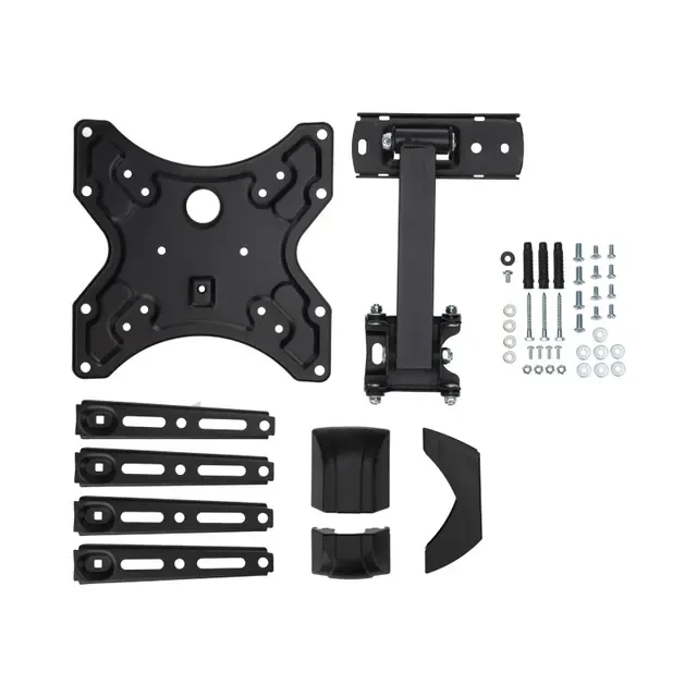 Кронштейн REXANT серии HOME используется для крепления LED, LCD, PLASMA телевизоров 13"- 55" дюймов к стене. Оснащен наклонно-поворотным механизмом (с 1 коленом), который позволяет свободно регулировать положение телевизора, что обеспечивает комфортный и удобный просмотр вне зависимости от Вашего расположения в комнате. В любой момент телевизор можно повернуть в нужную Вам сторону, выставить необходимый угол наклона и избежать бликов при смене освещения. Конструкция механизма позволяет точно и надежно фиксировать заданное положение с максимальной точностью. Кронштейн изготовлен из прочной и износоустойчивой стали, что гарантирует безопасность в процессе использования. Все необходимые крепления для установки изделия поставляются в комплекте, что обеспечивает удобный и быстрый монтаж. Расстояние от стены до кронштейна регулируется от 55 до 232 мм. Поддержка крепления стандарта VESA: 75х75/100х100/200x200/300x300/400x400.