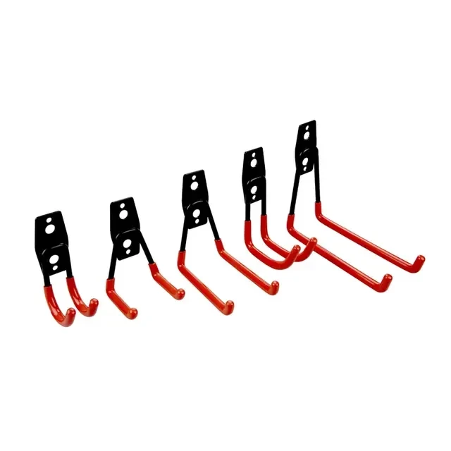 Набор состоит из пяти крюков, которые используются для фиксации предметов или конструкций на стенах. Изделия выполнены из стали и имеют ПВХ покрытие, которое защищает закрепленные предметы от царапин и повреждений, а также предотвращает их скольжение или смещение. Для обеспечения быстрого и удобного монтажа в комплекте поставляются крепления. Комплектация набора: Маленький J-образный крюк, 65 мм; Большой J-образный крюк, 105 мм; Маленький L-образный крюк, 65 мм; Средний L-образный крюк, 125 мм; Большой L-образный крюк, 180 мм.