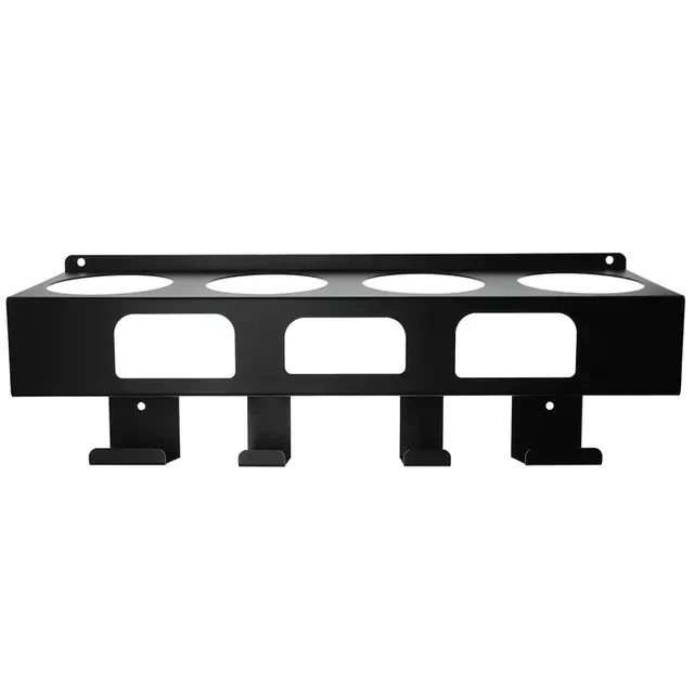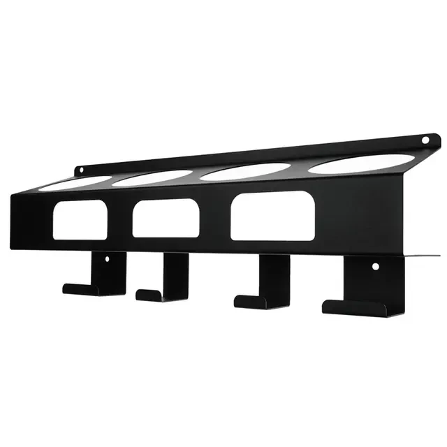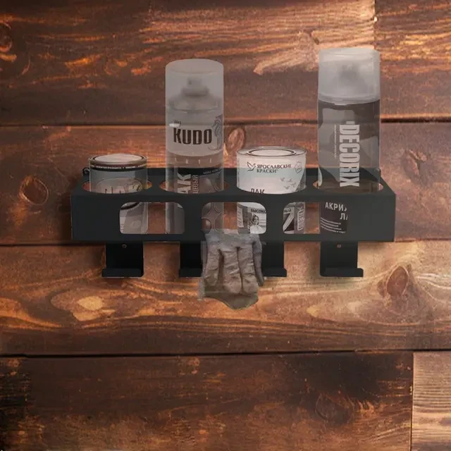 Настенный держатель позволит удобно расположить шесть баллончиков аэрозольной краски, строительного клея или других предметов для покрасочных работ диаметром до 100мм(R50). Предназначен для установки в гараже, мастерской, кладовке, на балконе, складе и в других местах. Держатель имеет продуманную конструкцию, предусматривающую место для хранения перчаток или любых других аксессуаров. Оснащен четырьмя крючками, которые можно использовать как дополнительное место для хранения строительных очков, строительных перчаток, халатов или любых других аксессуаров. Изделие обеспечивает порядок на рабочем месте и быстрый доступ к инструменту. Материал изготовления – сталь. Цвет – черный. Все необходимые крепления для установки держателя поставляются в комплекте.