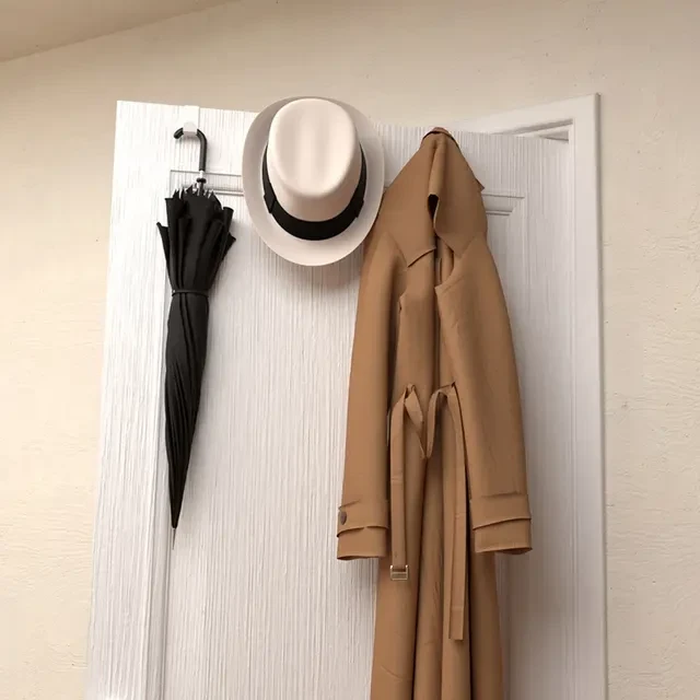Держатель предназначен для хранения одежды или любых других вещей. Имеет компактные размеры, экономит пространство и обеспечивает быстрый доступ к необходимым предметам. Изделие предусматривает возможность размещения повседневной одежды, курток, сумок, зонтов и т.д. Держатель совместим со стандартными дверьми, максимальная ширина которых не превышает 42 мм. Установка осуществляется без крепежа, так как технически проработанная конструкция не позволит держателю слететь с двери. В конструкции предусмотрено отверстие, которое позволяет в случае необходимости надежно прикрутить держатель сверху двери. Модель выполнена из стали и покрыта приятной на ощупь муаровой порошковой краской, которая гарантирует равномерный цвет изделия, а также устойчивость к механическим повреждениям.
