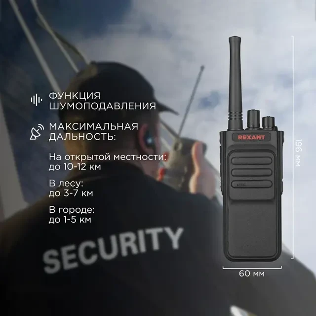 Профессиональная радиостанция REXANT R-3 – это компактное портативное средство связи. Представляет собой полезный прибор для сотрудников магазинов/складов, строителей, туристов и т. д. Позволяет поддерживать стабильную связь находясь на удаленном расстоянии друг от друга и не зависеть от сотовых вышек, роуминга и прочих неудобств мобильной связи. Основные функции: голосовая активация передачи VOX, ограничение времени непрерывной работы на передачу ТОТ, шумоподавитель, применение субтонов CTCSS\DCS 44 CTCSS, 115 DCS, режим сканирования, голосовое оповещение, экономия батареи, предупреждение о низком заряде батареи, блокировка канала, переключатель широкого/узкого диапазона частот. Максимальная дальность приема-передачи сигнала на открытой местности (поле, водоем, горы) составляет до 10-12 км, в лесу 3-7 км, в городе 1-5 км.