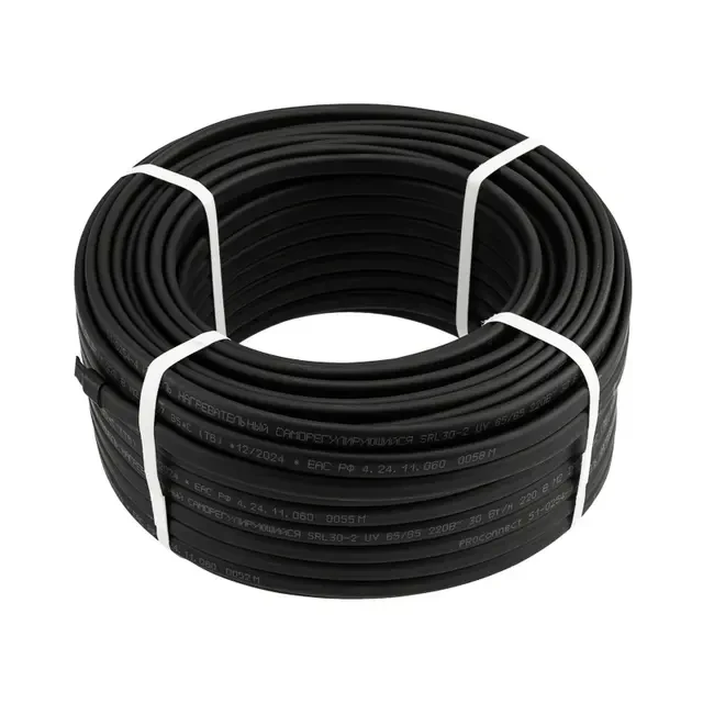 Саморегулирующийся кабель предназначен для обогрева трубопроводов, водопроводов (обычных зон) и резервуаров. Подходит для обогрева полов. Защищает водостоки и кровли от снега и льда. Кабель меняет собственное тепловыделение в зависимости от внешних условий. Благодаря этому систему обогрева можно применять на трубе с разными температурными режимами (часть трубы на улице, часть – в подвале дома). Изделие устанавливается на трубопровод под теплоизоляцию. Кабель защищен от ультрафиолетовых лучей. Для герметизации соединения саморегулирующегося греющего кабеля с кабелем питания, а также для герметичной заделки его противоположной стороны используют наборы для концевой заделки REXANT (артикулы 51-0614 и 51-0615). Сечение токопроводящих жил: 0,9 мм2. Максимальная длина секции: 55 м. Коэффициент пускового тока: 2,7 при +10°С. Материал токопроводящих жил: луженая медная проволока.