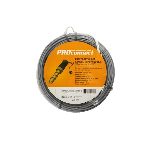 Кабель греющий саморегулирующийся 16Вт/м, на трубу, 10м/160Вт PROconnect